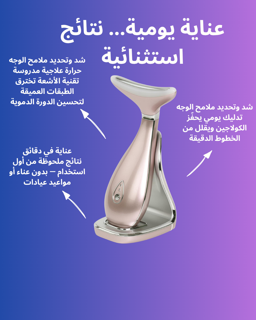 لتدليك الوجه، الحل الذكي الذي يجمع بين العناية اليومية والتقنيات المتقدمة لتحفيز البشرة وتعزيز نضارتها. صُمم الجهاز ليكون رفيقك اليومي في روتين العناية، ويمنحك نتائج ملموسة من الاستخدام الأول.