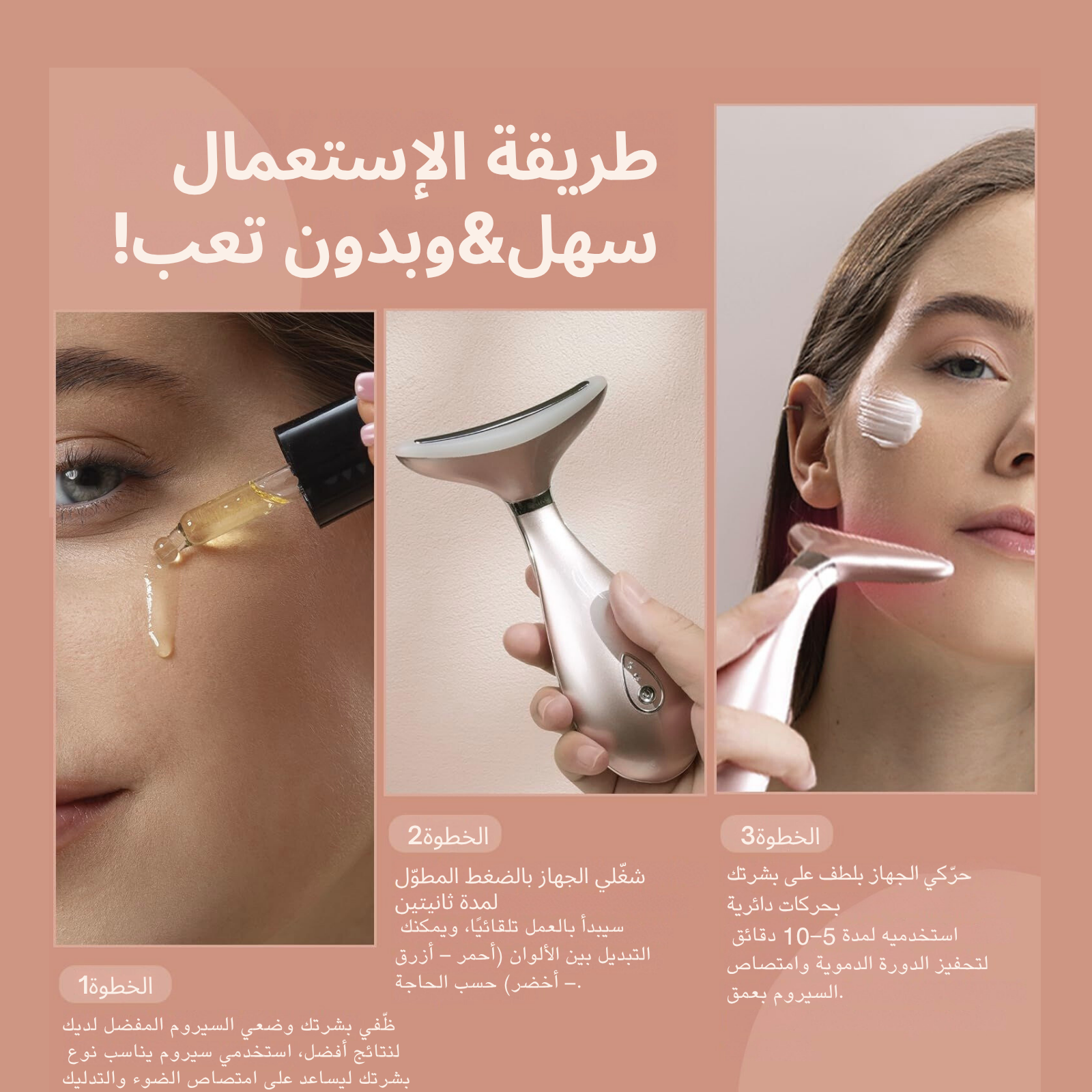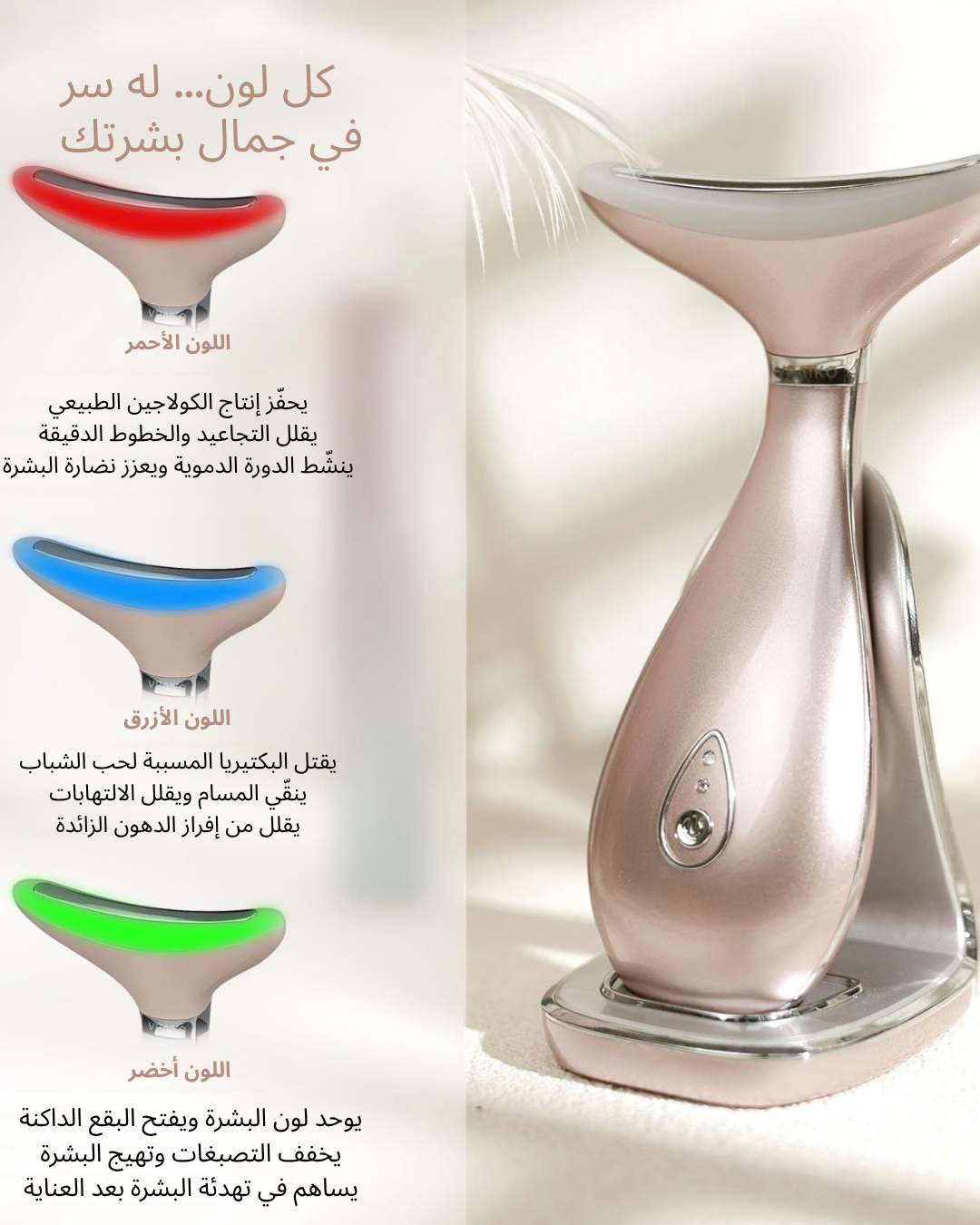 جهاز تدليك الوجه مزوّد بأشعة ضوئية مختلفة (أحمر، أزرق، أخضر...)، صُممت لتستهدف مشاكل البشرة المختلفة بفعالية