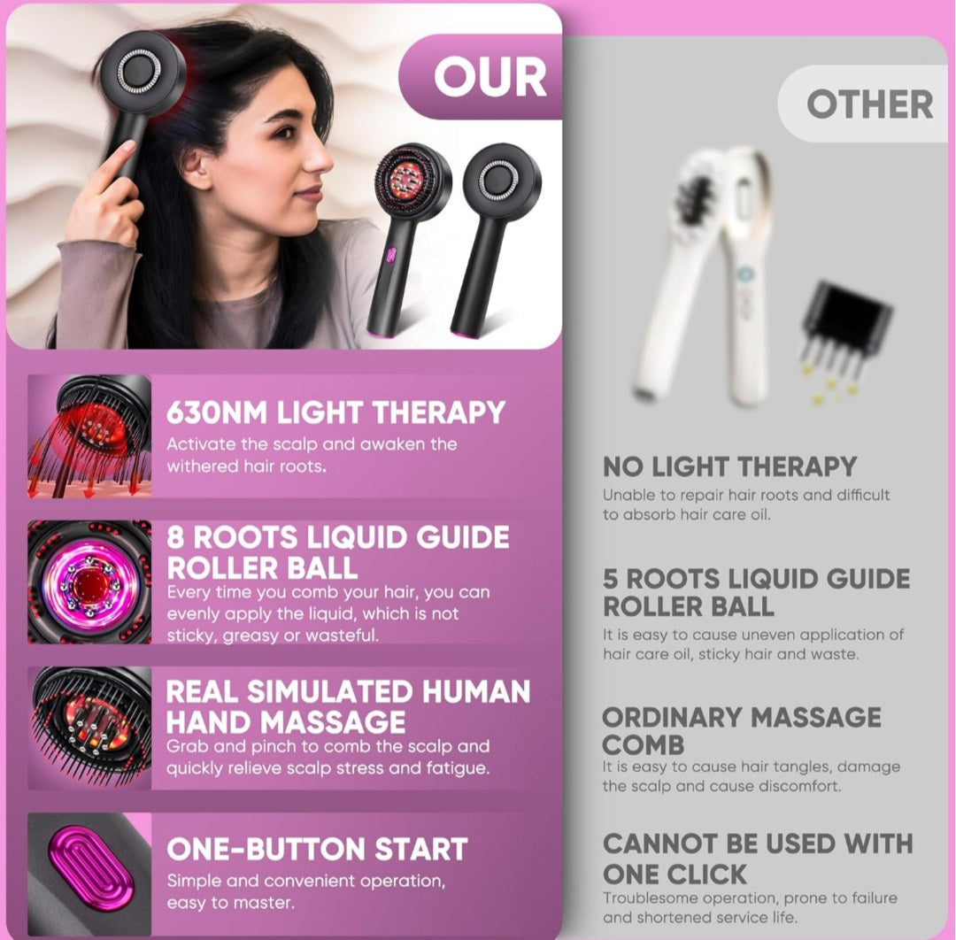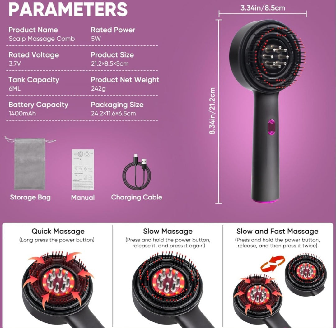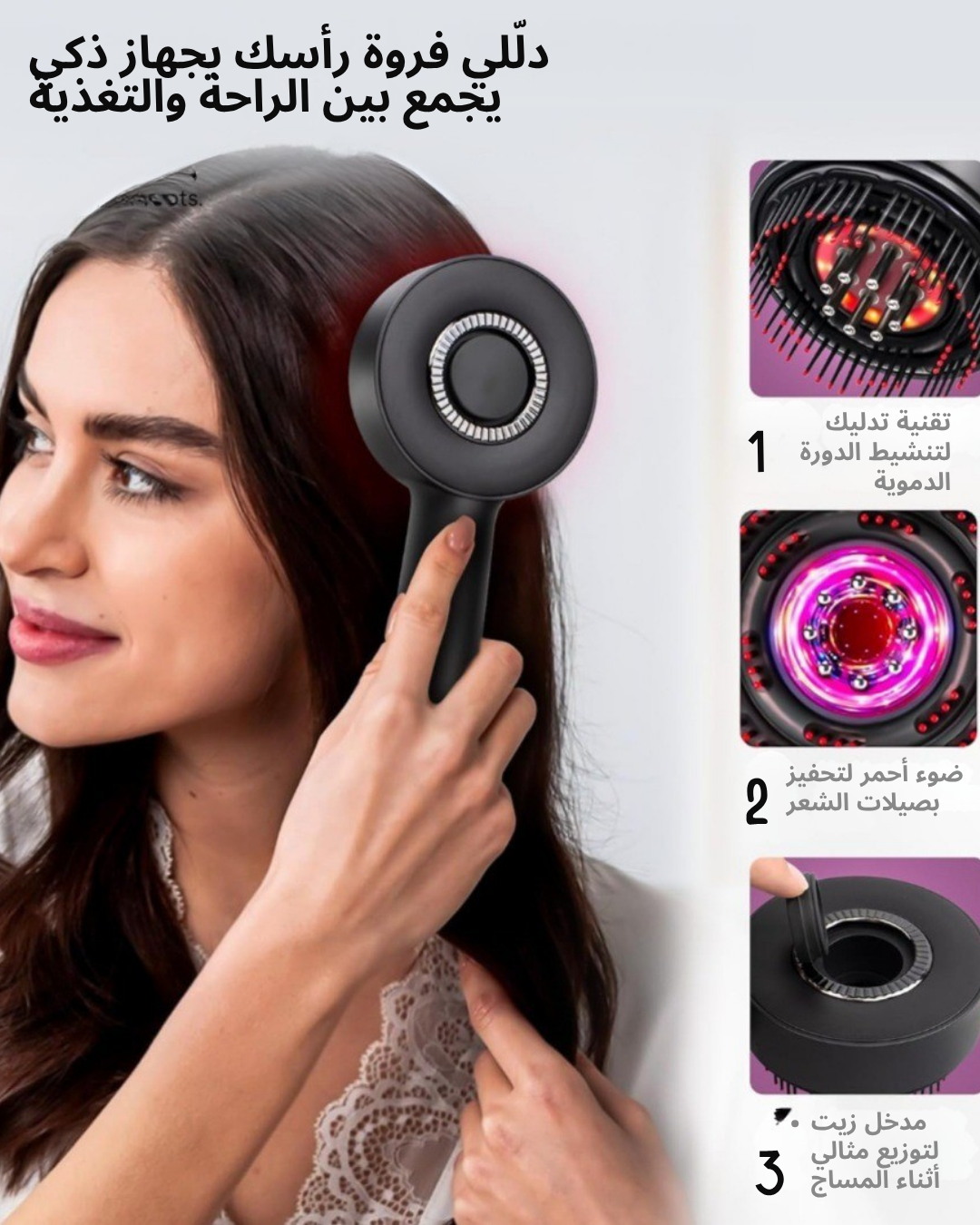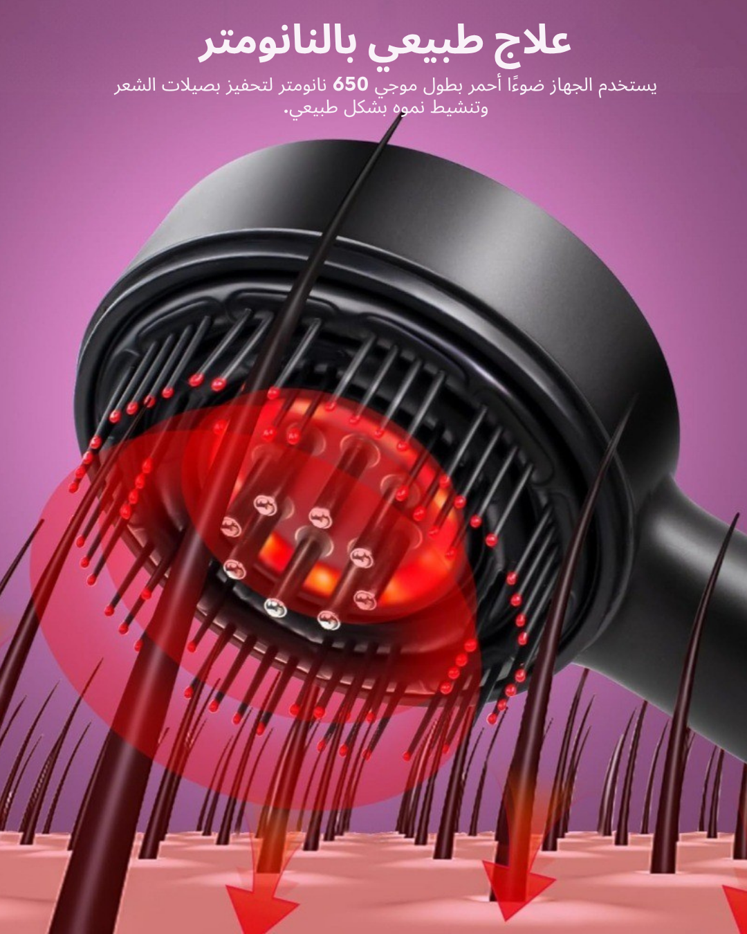 يعمل الجهازعلى تنشيط الدورة الدموية في فروة الرأس من خلال اهتزازات دقيقة تُخفف التوتر وتحفّز بصيلات الشعر للنمو. استمتعي بتجربة تدليك احترافية في منزلك، تساعد على تقليل التساقط وتحسين كثافة الشعر مع الاستخدام المنتظم